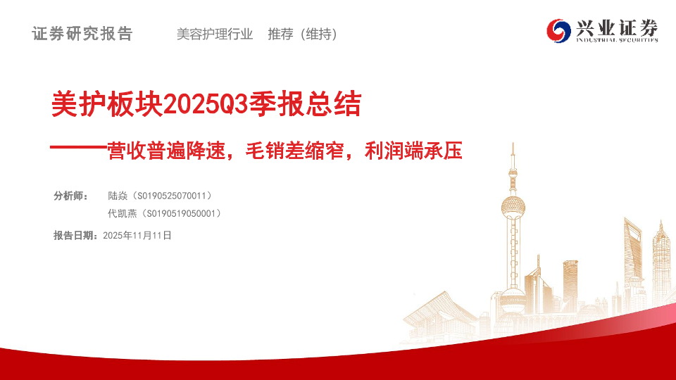 【兴业证券】【202511】美护板块2025Q3季报总结:营收普遍降速,毛销差缩窄,利润端承压-10页
