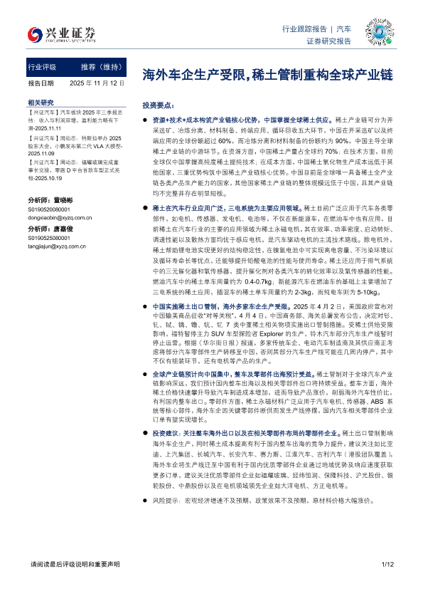 【兴业证券】【202511】海外车企生产受限,稀土管制重构全球产业链-12页