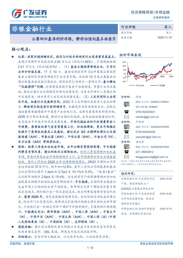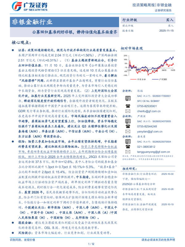 【广发证券】【202511】公募回归基准利好非银,静待估值向基本面看齐-12页