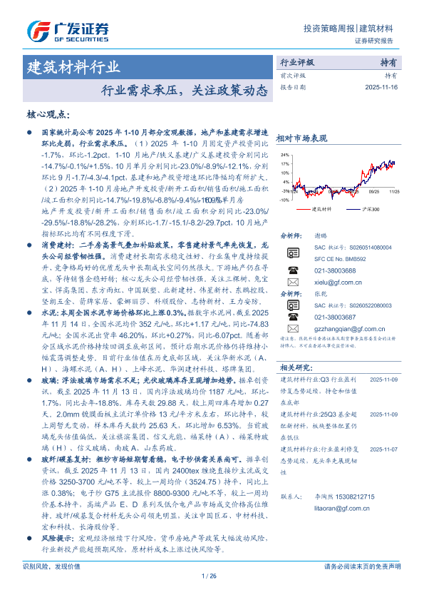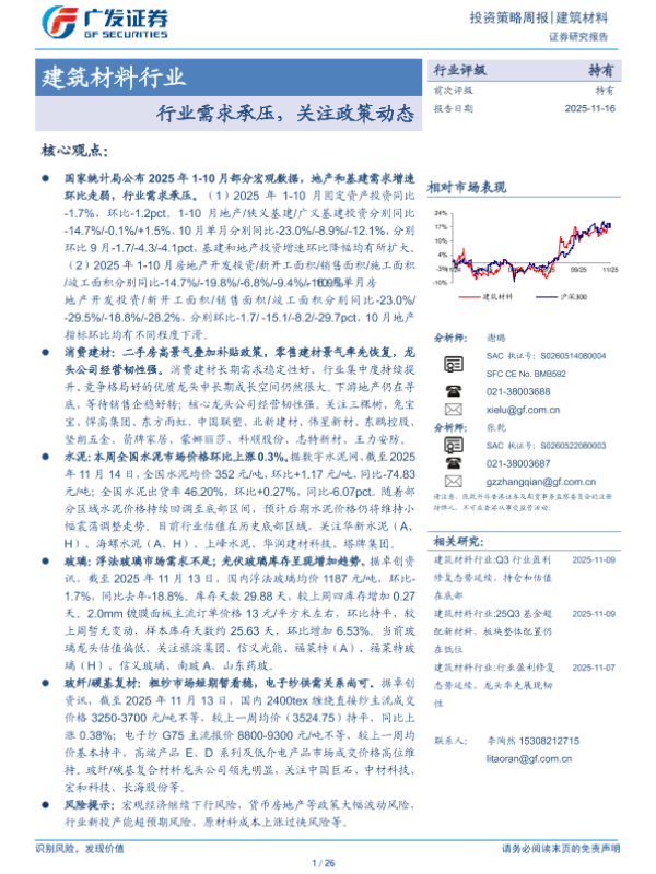 【广发证券】【202511】建筑材料行业投资策略周报:行业需求承压,关注政策动态-26页