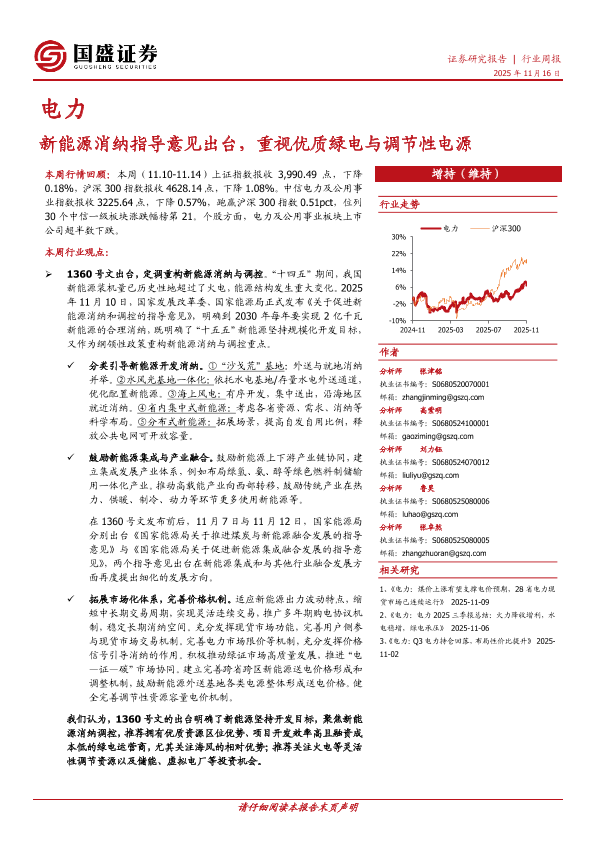 【国盛证券】【202511】新能源消纳指导意见出台,重视优质绿电与调节性电源-14页