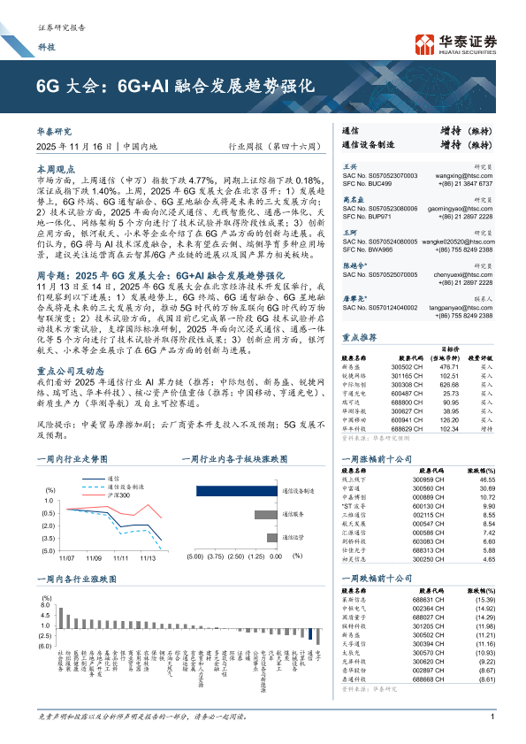 【华泰证券】【202511】科技行业周报(第四十六周):6G大会,6G+AI融合发展趋势强化-17页