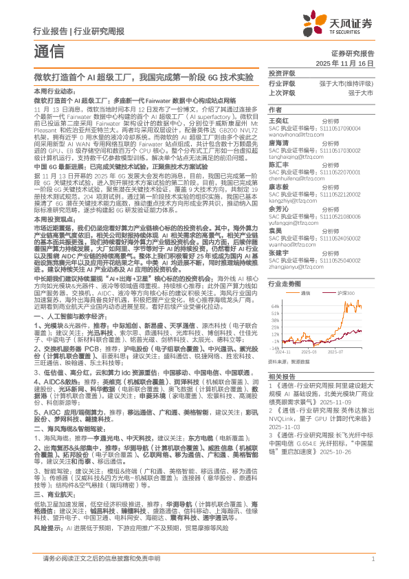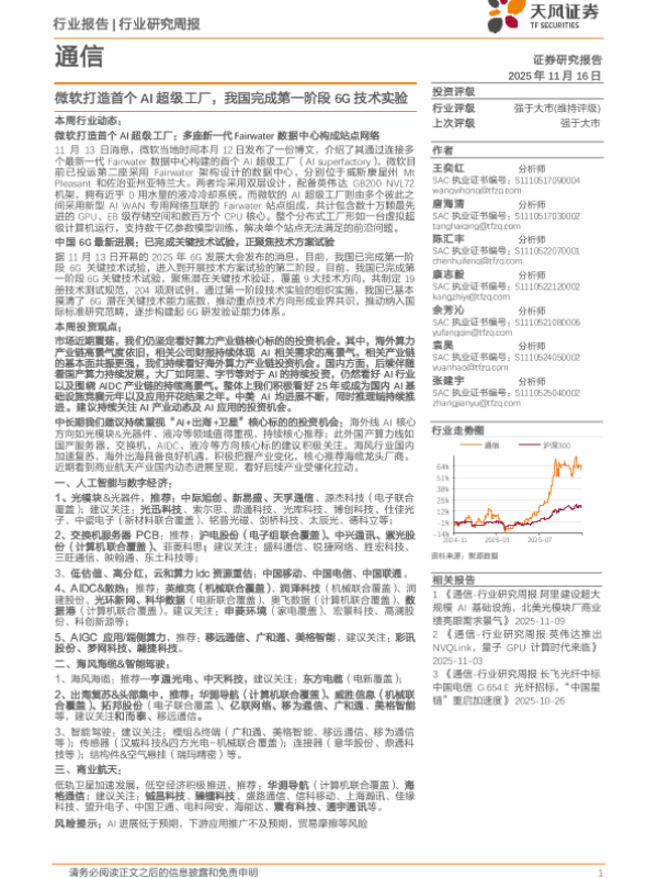 【天风证券】【202511】通信行业研究周报:微软打造首个AI超级工厂,我国完成第一阶段6G技术实验-12页