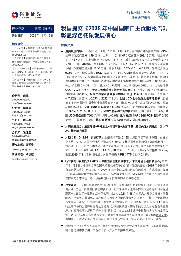 【兴业证券】【202511】我国提交《2035年中国国家自主贡献报告》,彰显绿色低碳发展信心-10页