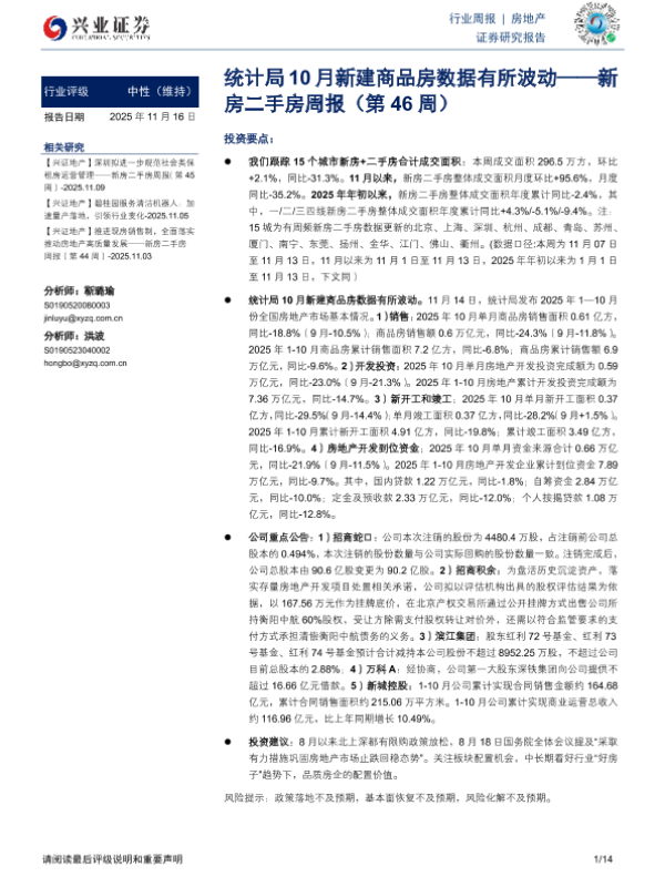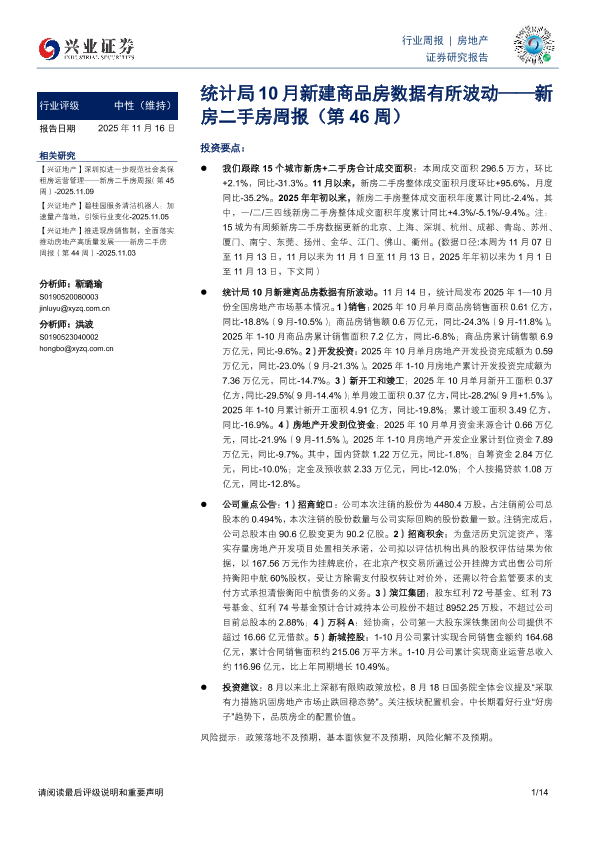 【兴业证券】【202511】新房二手房周报(第46周):统计局10月新建商品房数据有所波动-14页