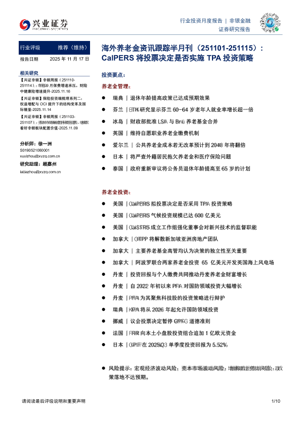 【兴业证券】【202511】非银金融行业海外养老金资讯跟踪半月刊:CalPERS将投票决定是否实施TPA投资策略-10页
