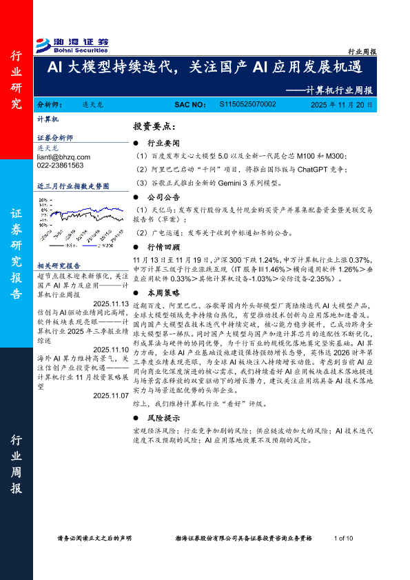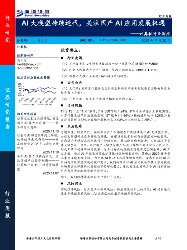 【渤海证券】【202511】AI大模型持续迭代,关注国产 AI应用发展机遇-10页