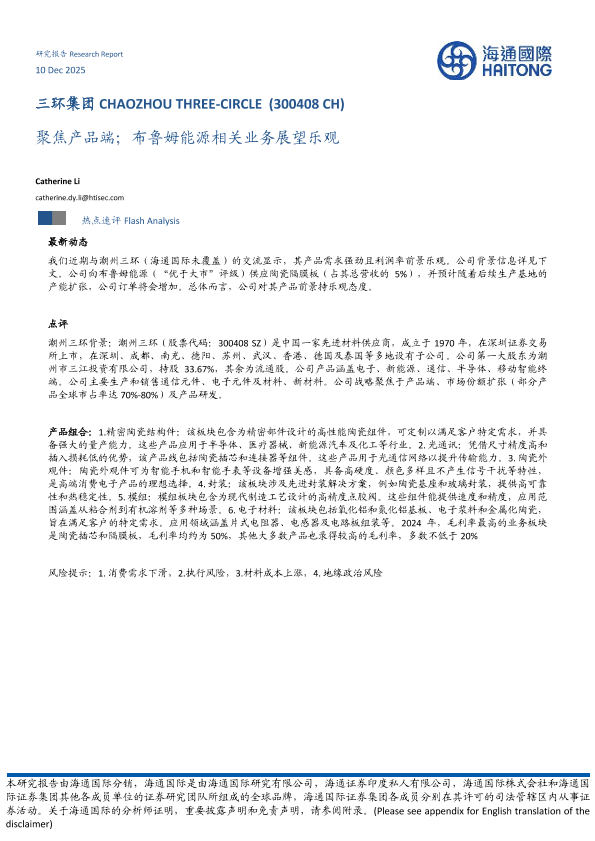 光通信 陶瓷材料 半导体 消费电子 新能源