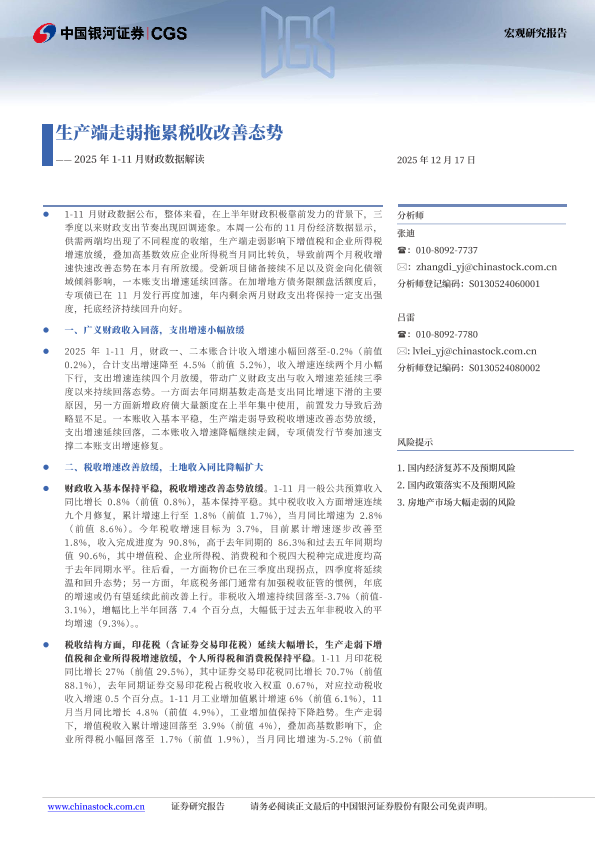 【银河证券】【2025】2025年1-11月财政数据解读:生产端走弱拖累税收改善态势-7页