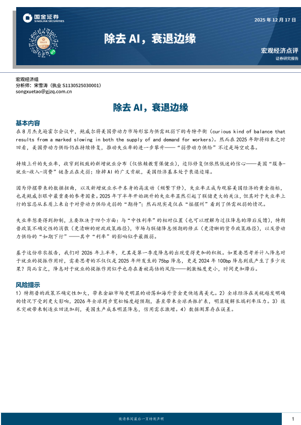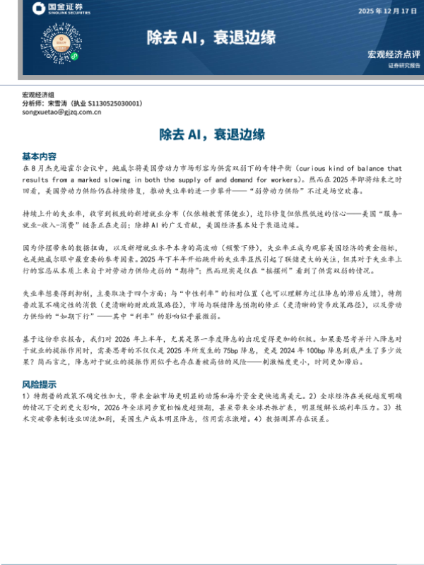 【国金证券】【2025】宏观经济点评:除去AI,衰退边缘-8页