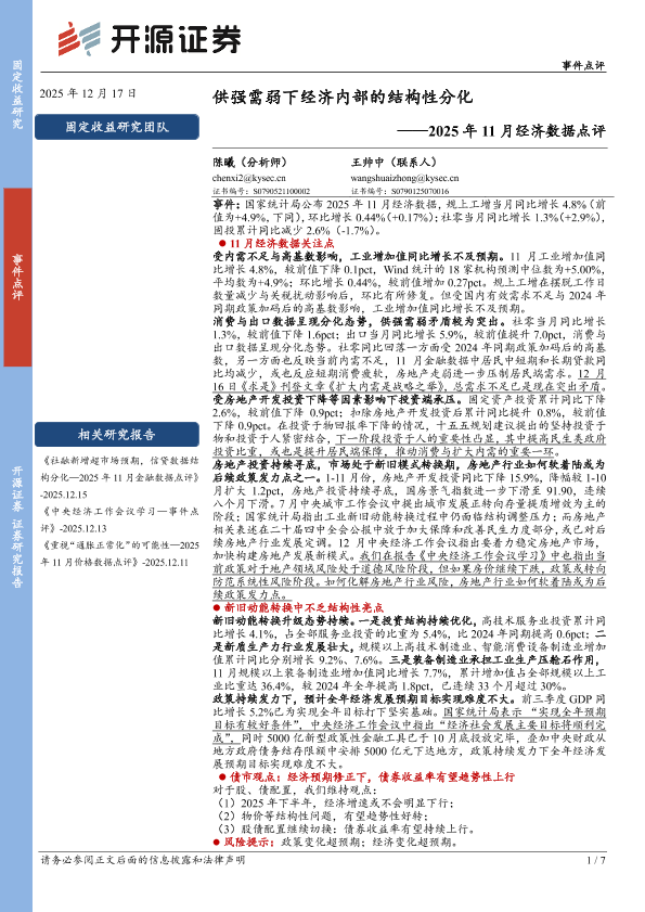 【开源证券】【202512】2025年11月经济数据点评:供强需弱下经济内部的结构性分化-7页