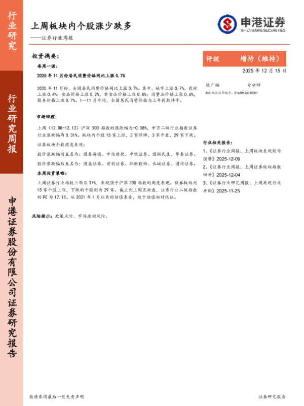【申港证券】【202512】证券行业周报:上周板块内个股涨少跌多-7页