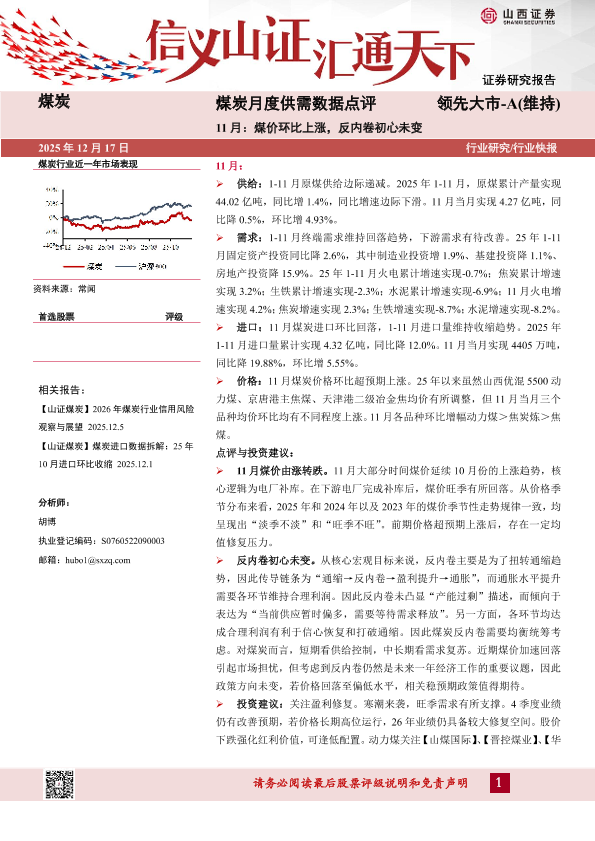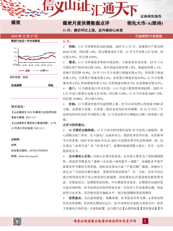 【山西证券】【202512】煤炭月度供需数据点评 领先大市-A(维持)-8页
