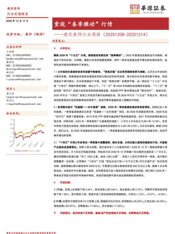 【华源证券】【202512】重视“春季躁动”行情——建筑装饰行业周报(20251208-20251214)-13页