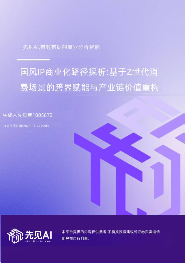 【先见AI】【202511】国风IP商业化路径探析:基于Z世代消费场景的跨界赋能与产业链价值重构-32页