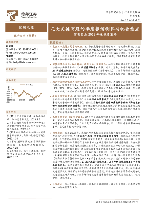 【德邦证券】【20230206】家电行业2023年度投资策略:几大关键问题的季度推演测算与机会盘点-29页