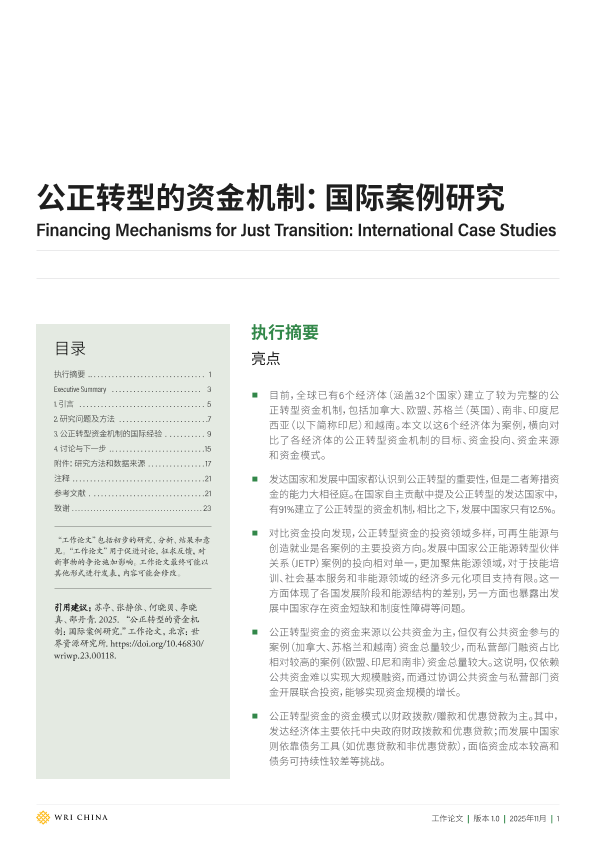【世界资源研究所】【2025】公正转型的资金机制 国际案例研究-24页