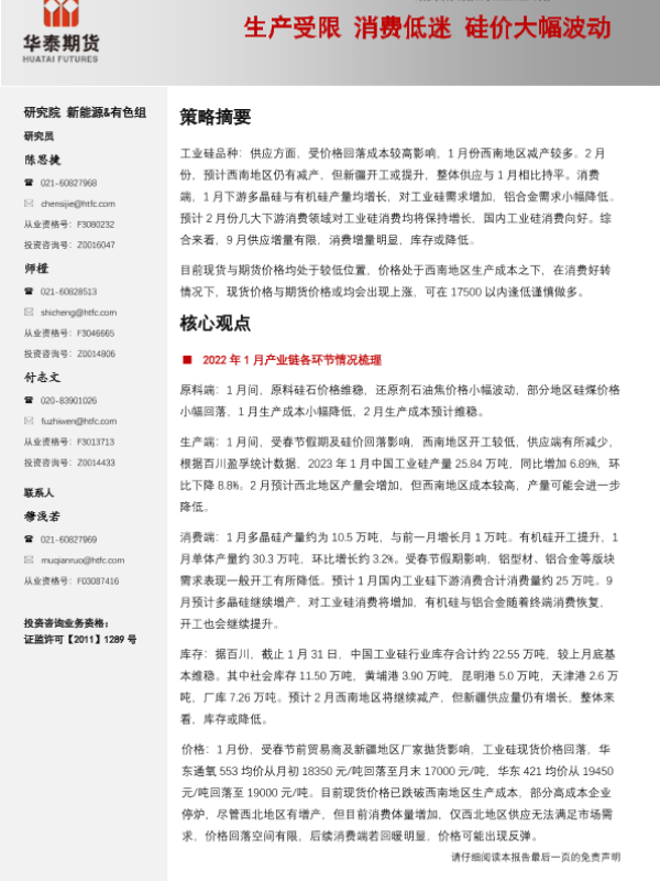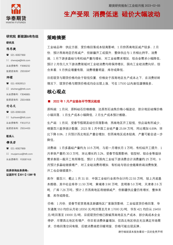 【华泰期货】【20230205】工业硅月报:生产受限,消费低迷,硅价大幅波动-21页