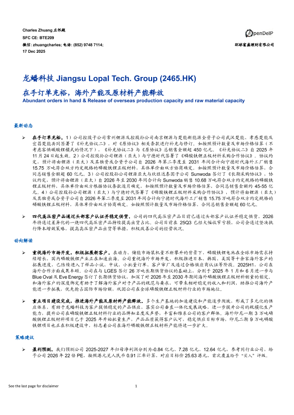 【环球富盛理财有限公司】【202512】在手订单充裕& Release of overseas production capacity and raw material capacity-5页