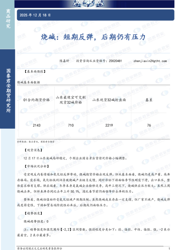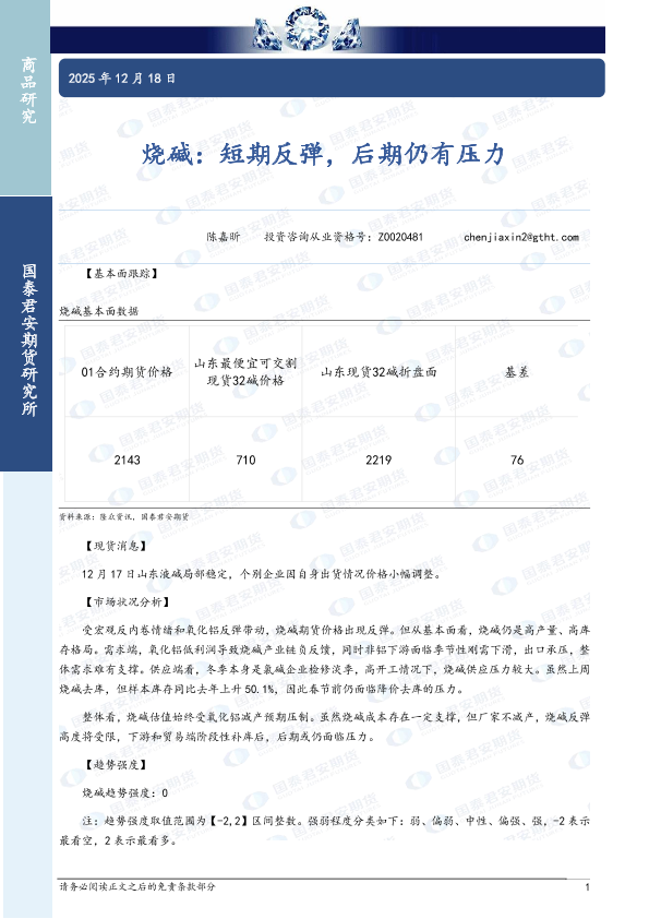 【国泰君安期货】【202512】烧碱:短期反弹,后期仍有压力-2页