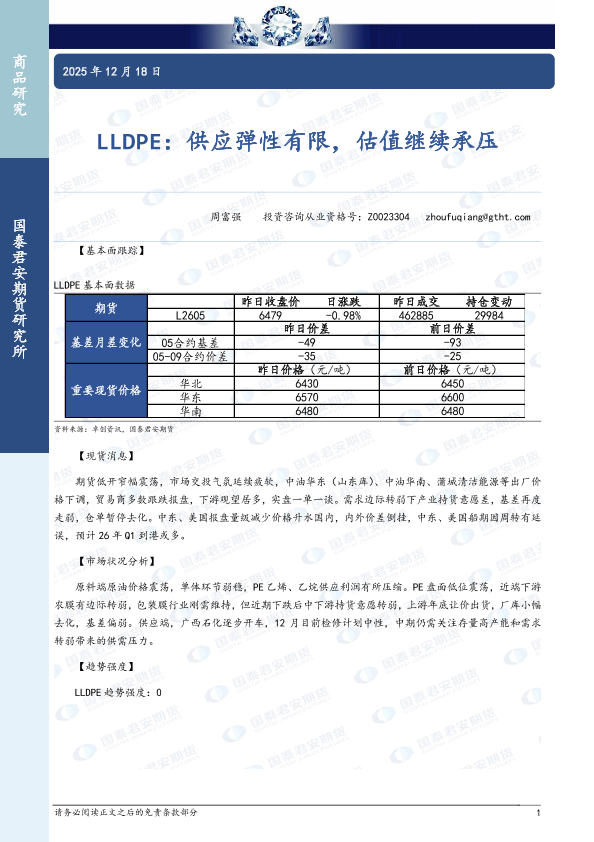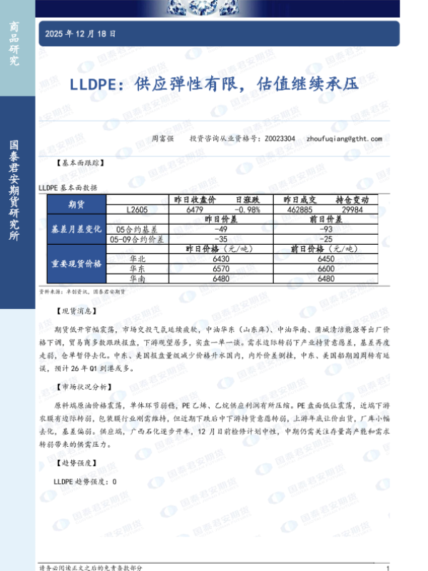 【国泰君安期货】【202512】LLDPE:供应弹性有限,估值继续承压-2页