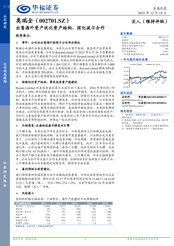 出海战略 金属包装 波尔合作 资产重组 盈利修复