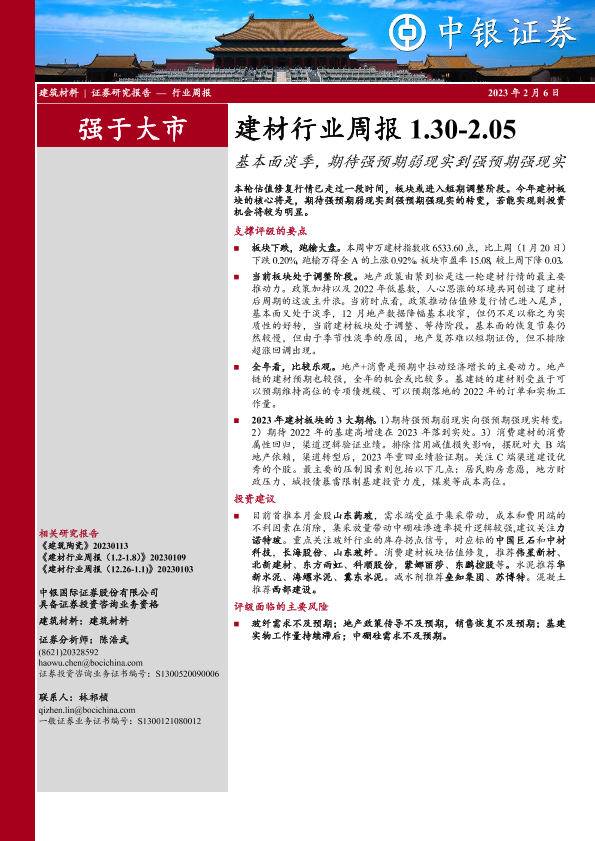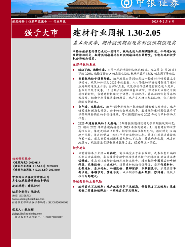 【中银证券】【20230206】建材行业周报:基本面淡季,期待强预期弱现实到强预期强现实-21页