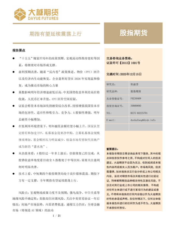 【大越期货】【202512】期指有望延续震荡上行-21页