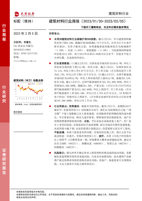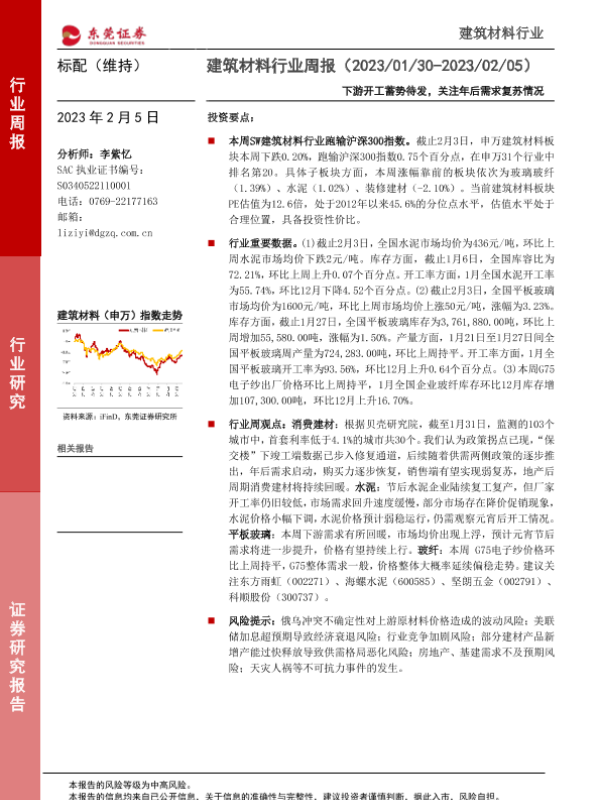 【东莞证券】【20230205】建筑材料行业周报:下游开工蓄势待发,关注年后需求复苏情况-15页