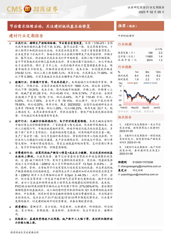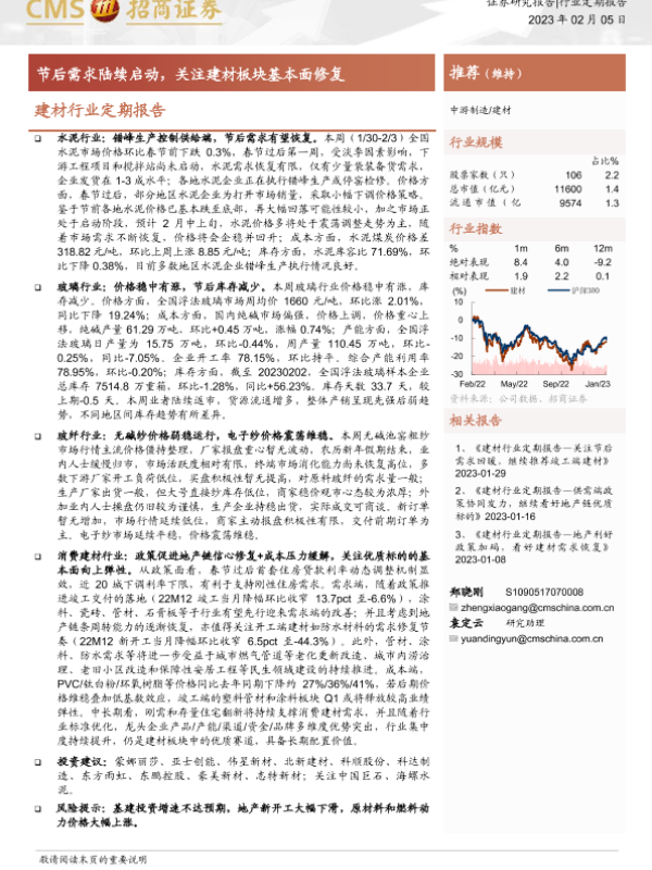 【海通证券】【20230205】建材行业定期报告:节后需求陆续启动,关注建材板块基本面修复-26页