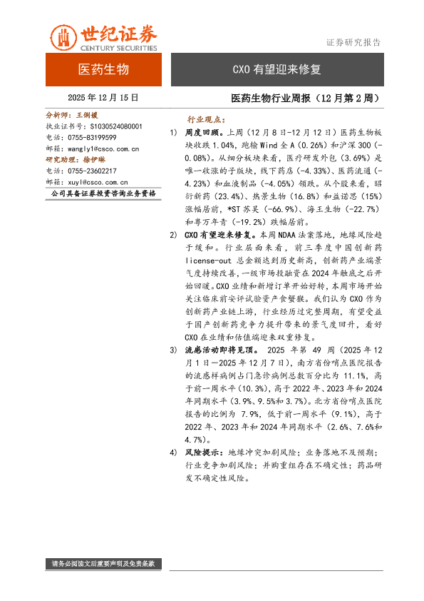 【世纪证券】【202312】2025-12-19_世纪证券_医药生物行业周报(12月第2周):CXO有望迎来修复.pdf-8页