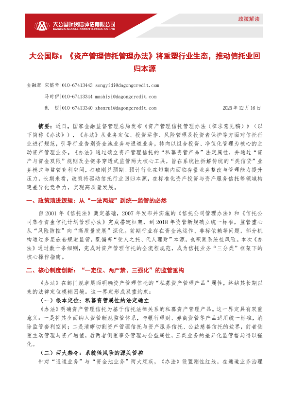 【大公国际】【202512】《资产管理信托管理办法》将重塑行业生态,推动信托业回归本源-5页