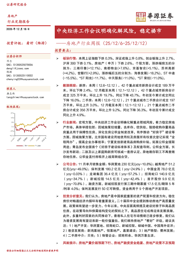 【华源证券】【202512】中央经济工作会议明确化解风险,稳定楼市-17页