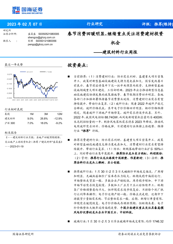 【国海证券】【20230207】建筑材料行业周报:春节消费回暖明显,继续重点关注消费建材投资机会-21页