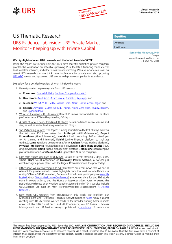 【UBS】【202511】UBS Evidence Lab inside UBS Private Market Monitor- Keeping Up with Private Capital-23页