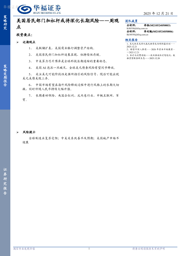 【华福证券】【202512】美国居民部门加杠杆或将深化长期风险——周观点-10页