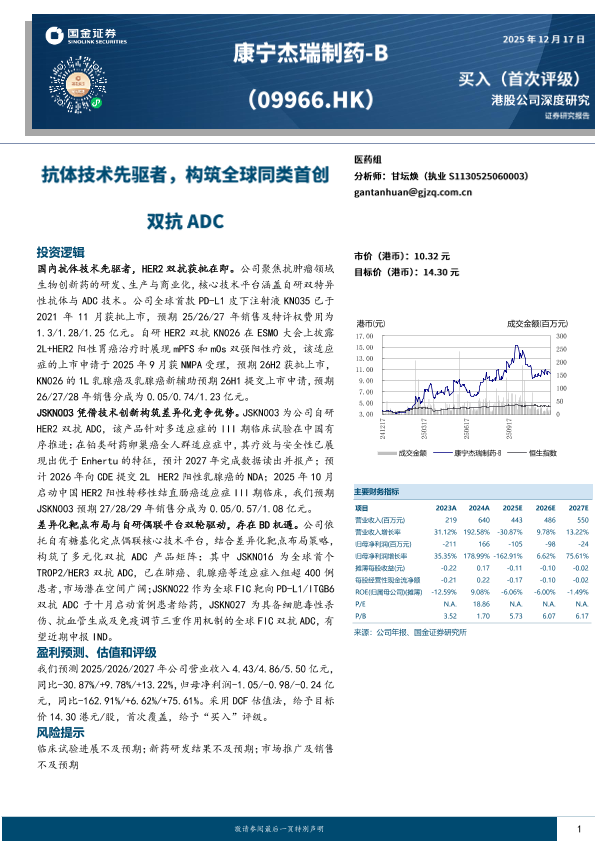 投资评级 临床研究 双抗ADC 康宁杰瑞 HER2靶点