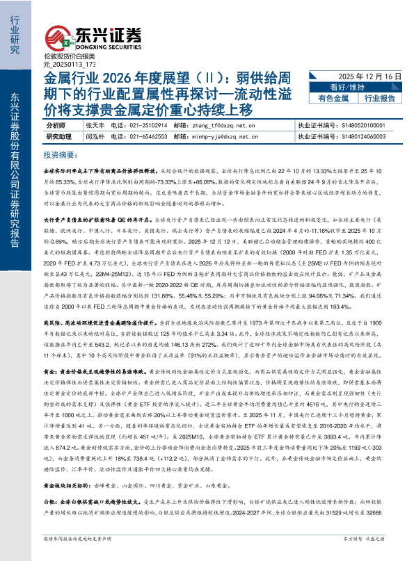 【东兴证券】【202512】金属行业2026年度展望(Ⅱ):弱供给周期下的行业配置属性再探讨—流动性溢价将支撑贵金属定价重心持续上移-30页
