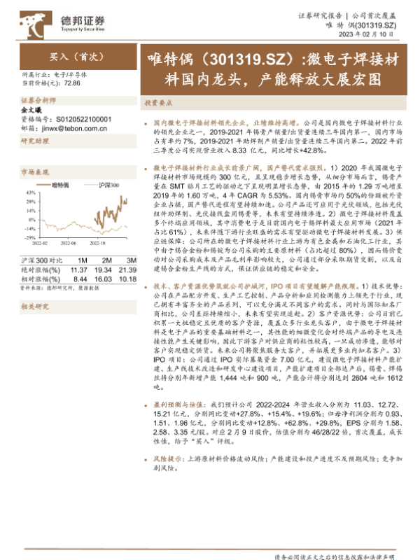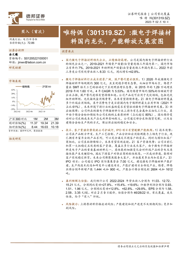 【德邦证券】【20230210】微电子焊接材料国内龙头,产能释放大展宏图-27页