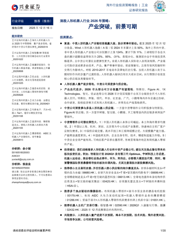 【兴业证券】【202512】港股人形机器人行业2026年策略:产业突破,前景可期-35页