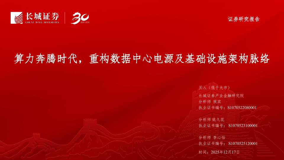 【长城证券】【202512】算力奔腾时代,重构数据中心电源及基础设施架构脉络-34页