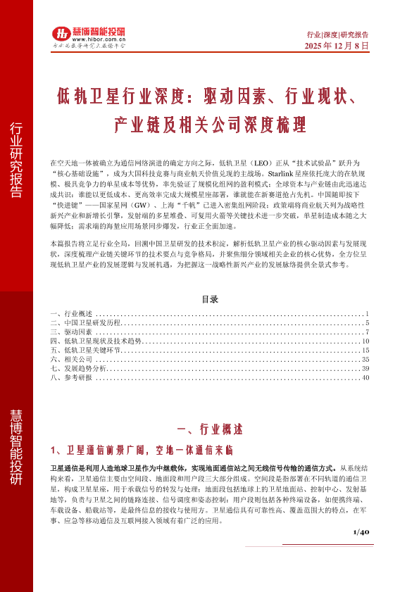 【慧博智慧博】【2024】低轨卫星行业深度:驱动因素、行业现状、产业链及相关公司深度梳理-40页