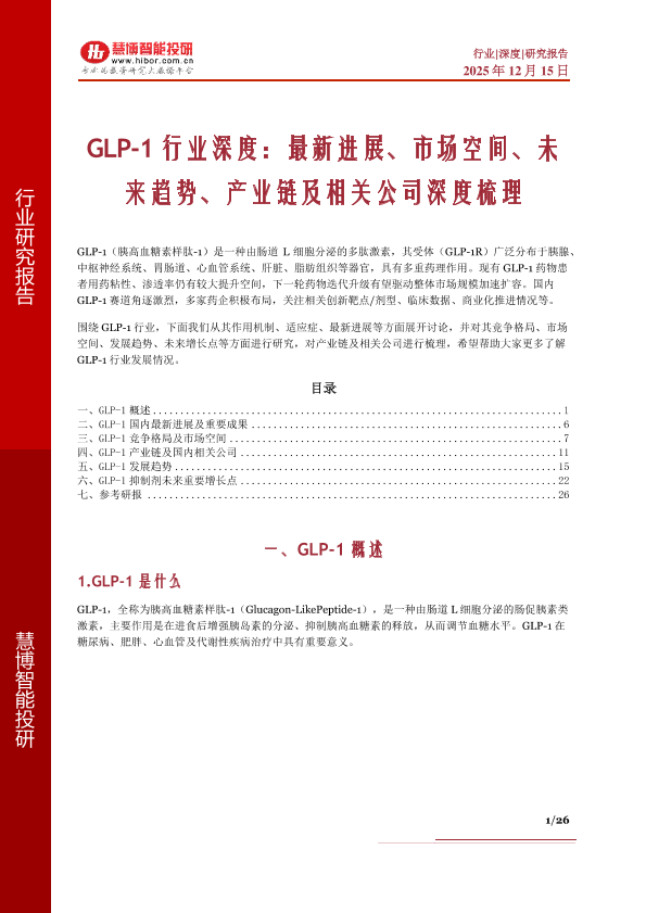 【慧博智慧博】【2025】GLP-1行业深度:最新进展、市场空间、未来趋势、产业链及相关公司深度梳理-26页