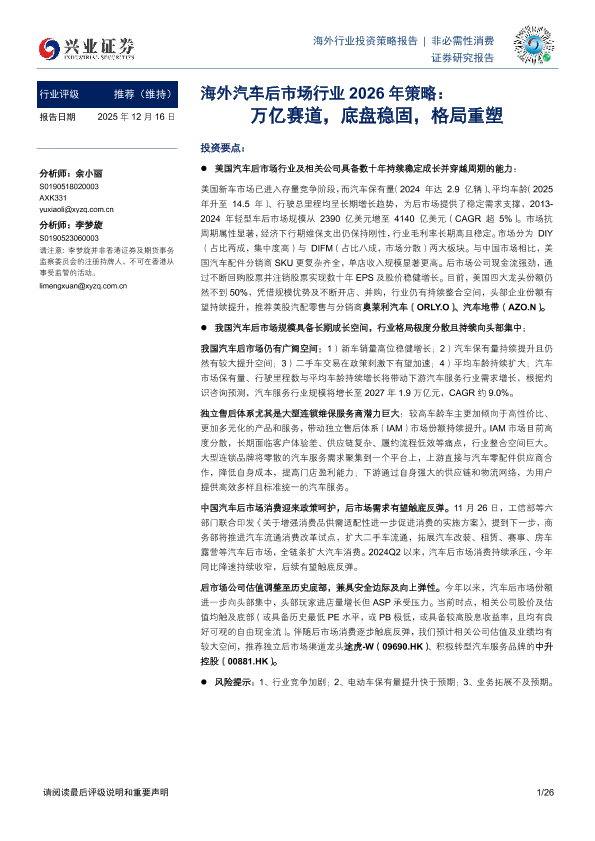 【兴业证券】【202512】海外汽车后市场行业2026年策略:万亿赛道,底盘稳固,格局重塑-26页
