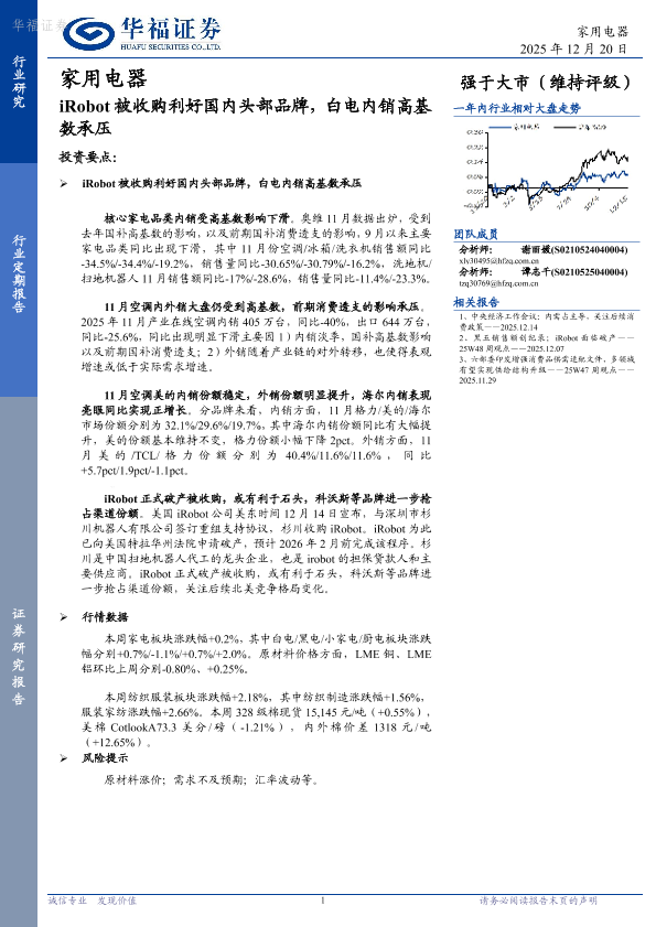 【华福证券】【202512】iRobot被收购利好国内头部品牌,白电内销高基数承压-13页