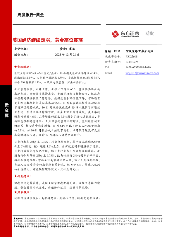 【东证期货】【202512】美国经济继续走弱,黄金高位震荡-11页