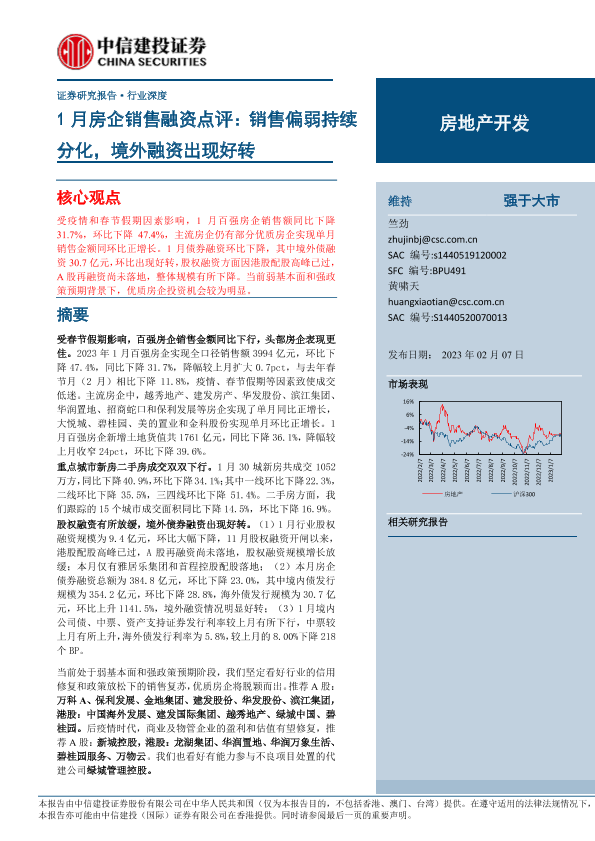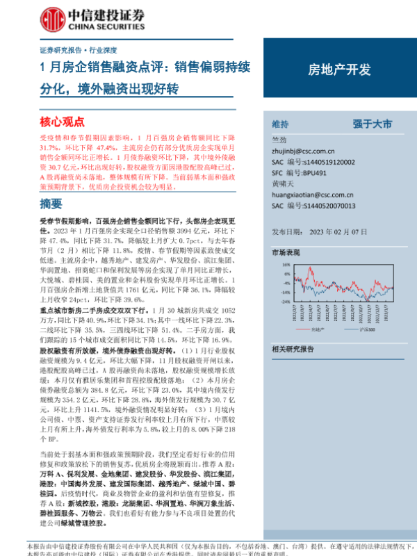 【中信建投证券】【20230207】房地产开发行业1月房企销售融资点评:销售偏弱持续分化,境外融资出现好转-23页