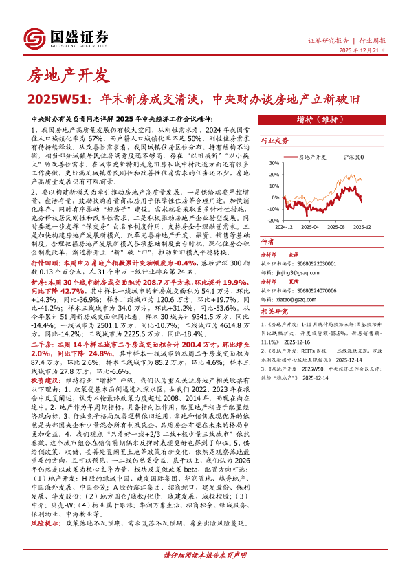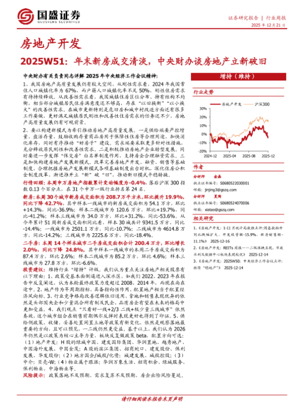 【国盛证券】【202512】房地产开发2025W51_年末新房成交清淡_中央财办谈房地产立新破旧-16页