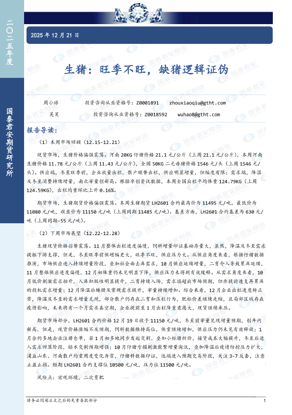 【国泰君安期货】【202512】生猪:旺季不旺,缺猪逻辑证伪-7页