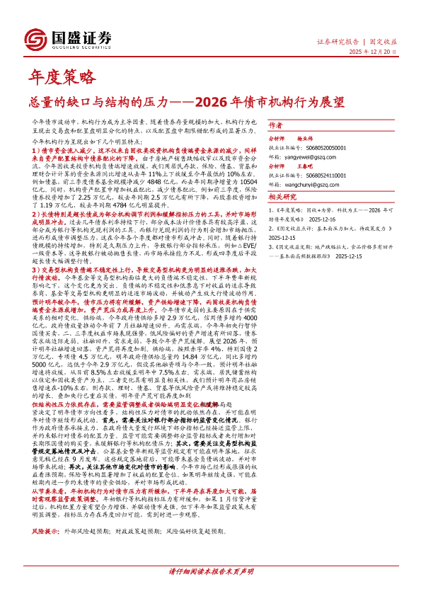 【国盛证券】【202512】总量的缺口与结构的压力——2026年债市机构行为展望-17页